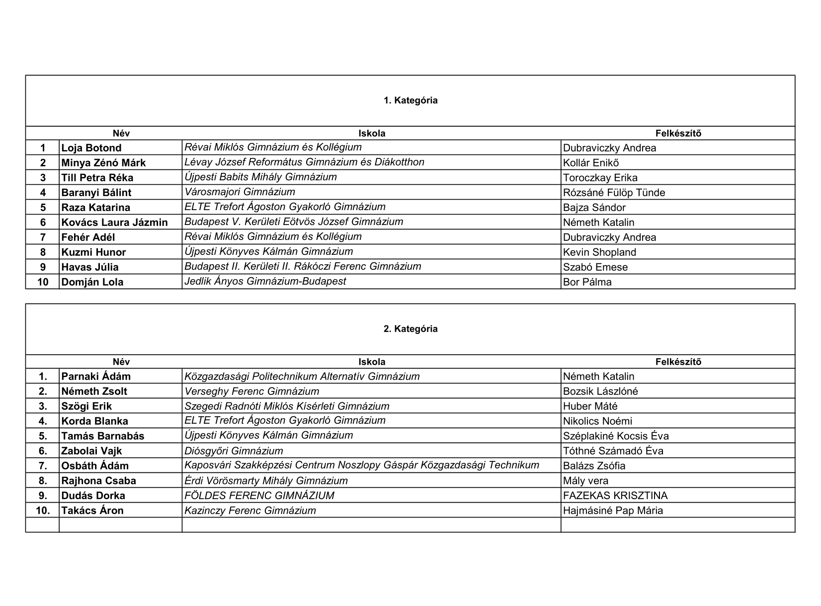 20. Országos Angol Nyelvi verseny 2023 (végeredmény)